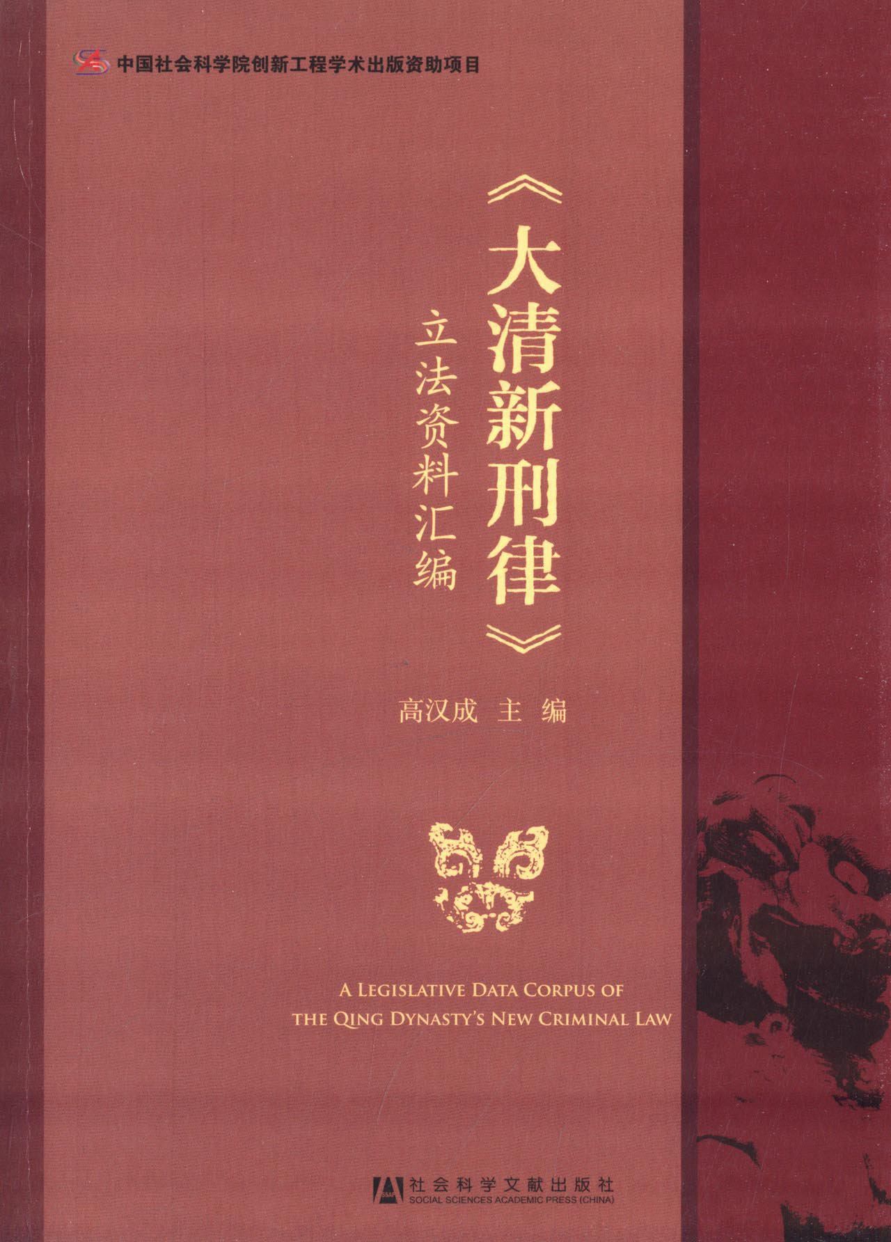 《〈大清新刑律〉立法资料汇编》,高汉成著,全书848千字,社会科学文献出版社2013年10月第1版。