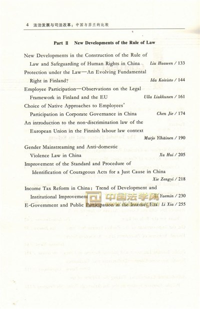 当前中国正在推进全面依法治国。全面依法治国,建设法治中国,要从中国国情和实际出发,也要遵循法治文明的一般规律,吸收借鉴他国的有益经验。芬兰地处北欧,经济发达、社会和谐、政治昌明、法治完备,具有独特的历史文化和法律制度。中芬两国在国家治理、法治建设、保障人权、司法改革、依法行政、社会和谐等方面,有许多共同点或相似处,双方的成功经验和实践做法,值得相互比较研究、彼此学习借鉴。