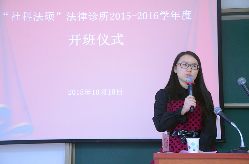 本次开班仪式由中国诊所法律教育专业委员会副秘书长、法硕办副主任、“社科法硕”法律诊所教学秘书刘晨琦老师主持。席月民老师宣布开始后,隆重介绍了出席本次活动的各位领导和老师,并对大家长期以来的辛勤付出表达了谢意。