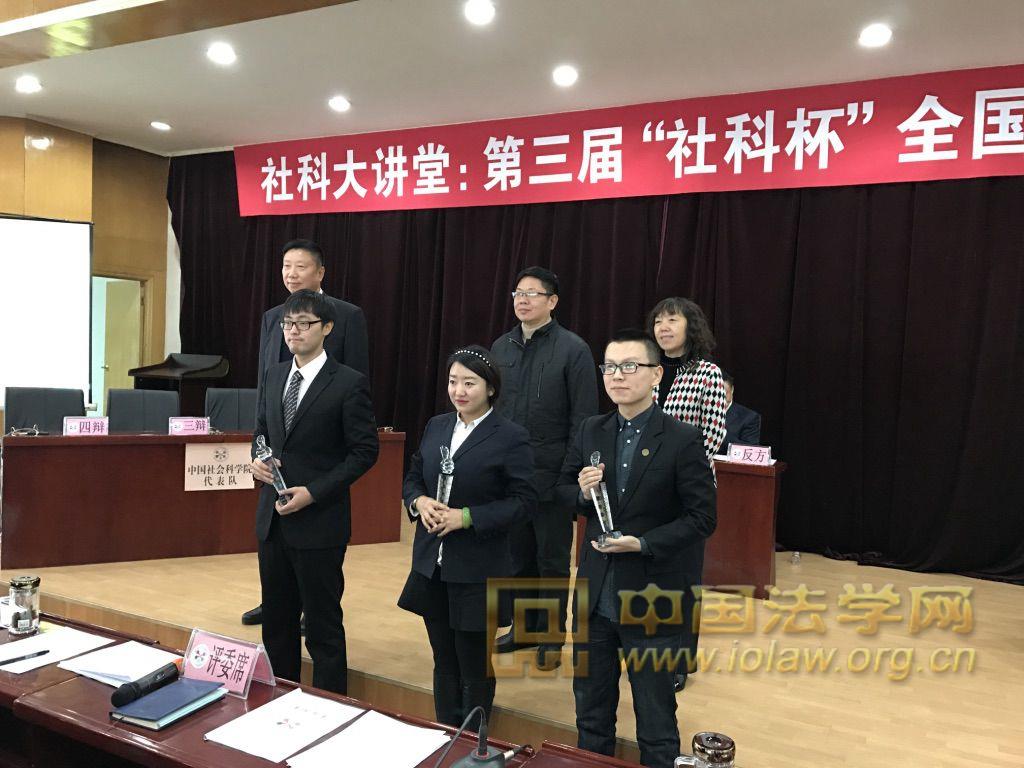 2016年11月28-29日,由黑龙江省社会科学院承办的第三届“社科杯”全国辩论大赛在北国冰城哈尔滨市顺利举行。中国社会科学院代表队在法学研究所经济法室主任、法学系副主任兼法硕办主任席月民老师的带领下,经过精心备战并克服种种困难,在初赛和半决赛中分别战胜黑龙江大学代表队和上海社会科学院代表队,成功杀入决赛,并喜获亚军。2016级法律硕士(非法学)研究生符强同学获得“最佳辩手”称号。