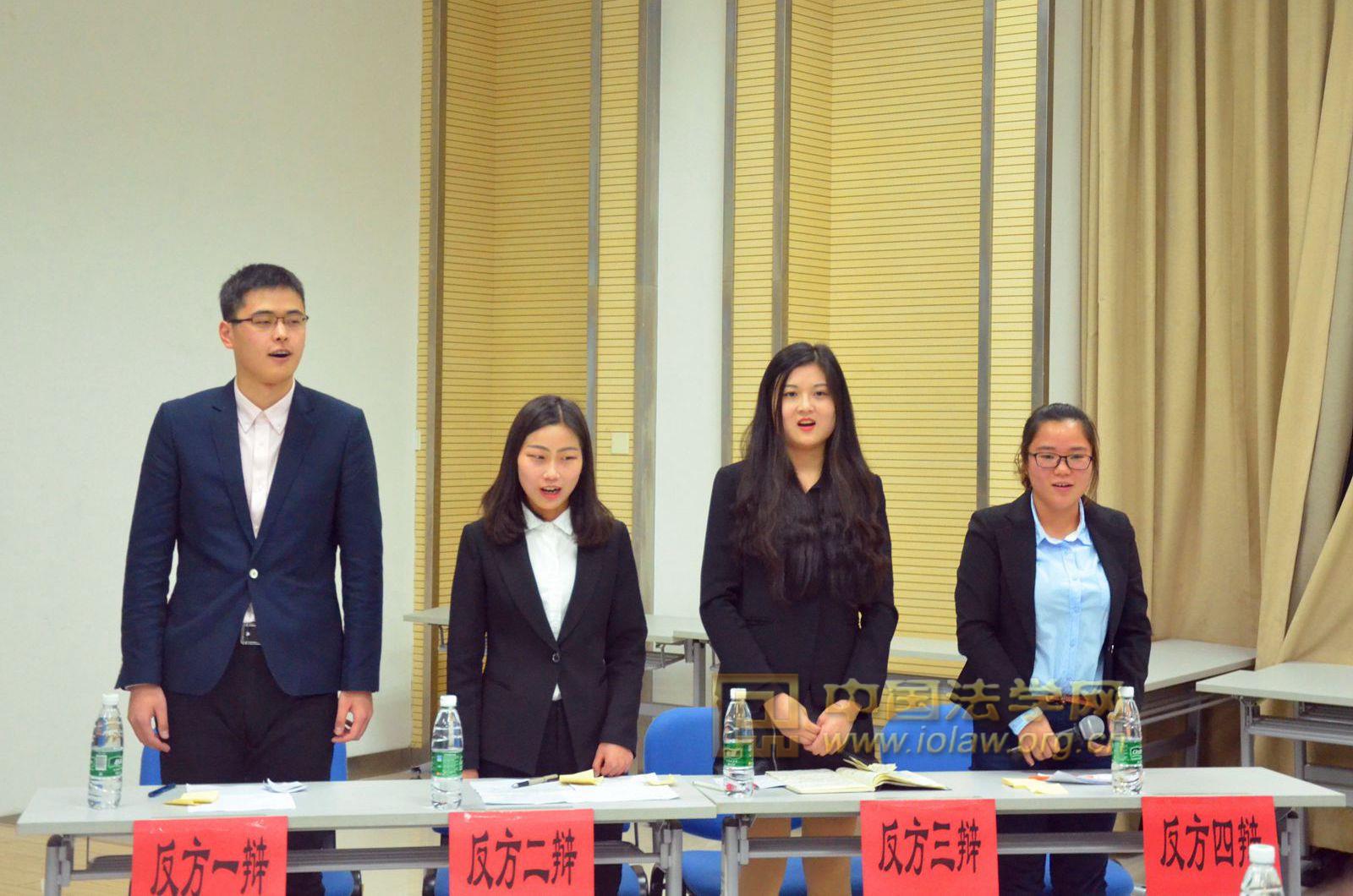 第一场比赛由主席吴沐优同学介绍了辩题和辩论规则。之后,正反双方依次登场,正方是由郭思语、李唯、孙友飞、范君丽四位同学组成的“笑傲江湖队”,主张“应该封杀有丑闻的公众人物”。他们首先对“封杀”、“丑闻”、“公众人物”的定义进行了基本限定,并从加强惩戒、预防丑闻行为的再次发生、保护社会利益、有利于培养正确的社会价值观等方面阐述了对有丑闻的公众人物进行封杀的必要性,着重阐明对公众人物进行封杀是有利于惩戒和预防丑闻行为,有效遏制不利影响,树立正确的价值观念。反方是由樊晓惠、张丽蓉、张轶男、储江四位同学组成的“物以稀为队”,主张“不应该封杀有丑闻的公众人物”。他们首先对何为封杀进行限定,认为封杀是指全行业领域内借助行政性力量禁止其从事公众性活动的一种行为,同时封杀是一种全面的否定措施,不存在部分封杀和有期限封杀之说,其后果是使公众人物陷其于万众非议的道德刑场;基于此限定,对广电总局封杀令从法律性质和现实层面提出了质疑,并着重阐明有丑闻的公众人物应当受到限制,但反对手段和目的不相适应的惩罚措施。他们认为,在健康的社会里,对有丑闻的公众人物进行的限制应该在法治的前提下进行。双方经过立论、攻辩、攻辩小结、自由辩论和总结陈词等环节充分阐述了各自的观点,一番番精彩的唇枪舌战引发了在场观众的阵阵掌声。
