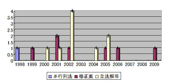 图一:1997年之后的刑法修正与立法解释情况(年度别)