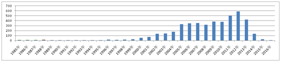 显然,根据表一(APP专利申请表),我国APP专利是随着我国移动互联网技术的发展而逐步兴起,在2003年之前处于比较低迷的状态,而在2003年之后呈现大幅增长趋势,在2015年APP相关专利申请数量超过1万件,达到峰值。再根据表二(APP专利授权表),虽然近些年来我国APP专利申请数量急剧增加,但授权数量却极少,2012年最高还不足600件,这说明绝大数APP专利申请最终并没有被授权,这也让众多APP设计者们倍感困惑:APP是否能够受到专利保护?APP需要符合什么样的条件才能被授予专利?长期以来,我国专利法缺少对类似APP以及有关商业方法专利的保护规范。面对越发迫切的社会需求,国家知识产权局在2000年之后开始探索对类似APP形式的专利保护,并与华为、中兴通讯、雅虎、腾讯、百度等大型企业以及中国银行、中国建设银行等金融机构进行广泛探讨。2009年1月,国家知识产权局就“商业方法专利的审查方式”作出尝试性规范,但由于缺少法律的明确定位,对于社会普遍关心的“APP能否申请专利,以及如何申请专利”等重要问题并没有给予准确回答。为此,国务院在2015年6月份出台的《关于大力推进大众创业万众创新若干政策措施的意见》[12],将“研究商业方法等新形态创新成果的知识产权保护”列入当前亟待解决的重要问题。
