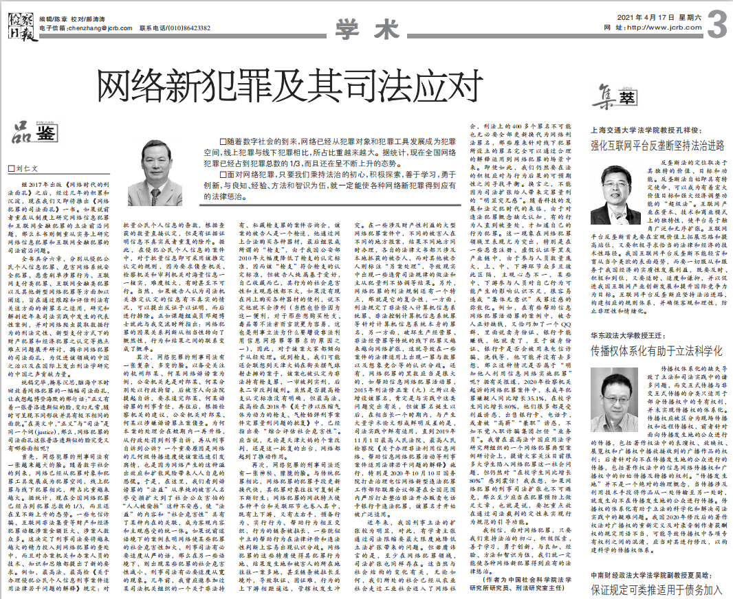 来源:《检察日报》2021年4月17日。本文为完整版,系《网络犯罪的司法面孔》(刘仁文主编,中国社会科学出版社出版)一书前言。